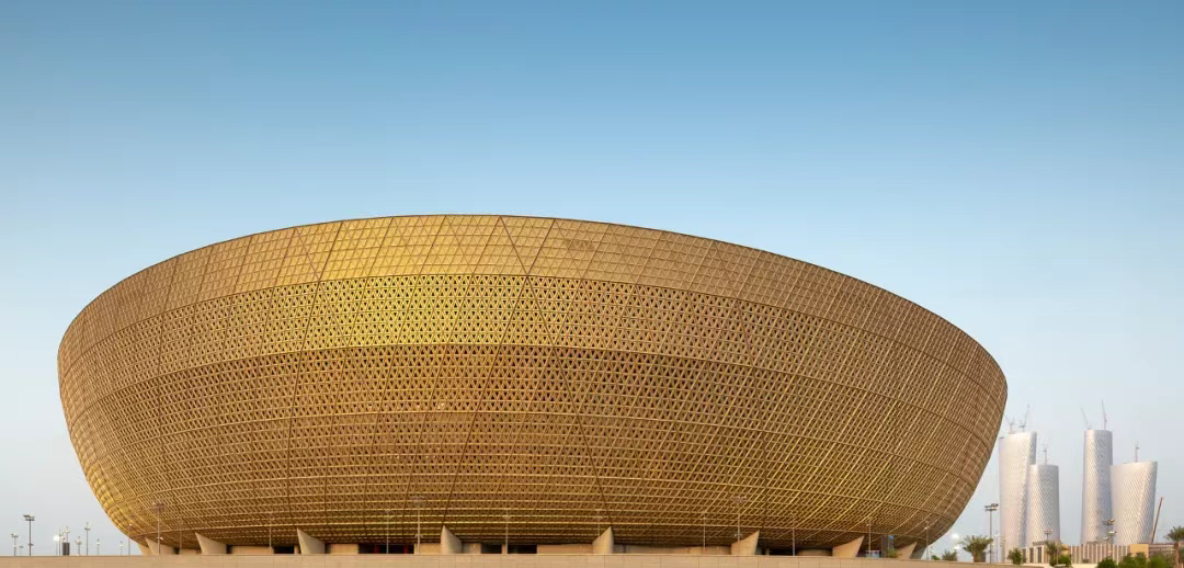 卢塞尔球场(Lusail Stadium)是卡塔尔世界杯的主体育场,可容纳8万名观众,是卡塔尔目前规模最大的体育场,根据赛程,将会在此举行决赛和闭幕式。作为世界杯最大的球场,卢塞尔球场是世界上同类型索网体系中跨度最大、悬挑距离最大的索网屋面单体建筑,这座面积19.5万平方米的“金色之碗”设计灵感来自卡塔尔传统灯笼光影交错的典型图案。值得一提的是,该场馆是八座比赛球场中唯一由中国公司——中国铁道建筑集团有限公司承建的体育场,是中国企业参与建设的第一座国际足联标准的世界杯球场。