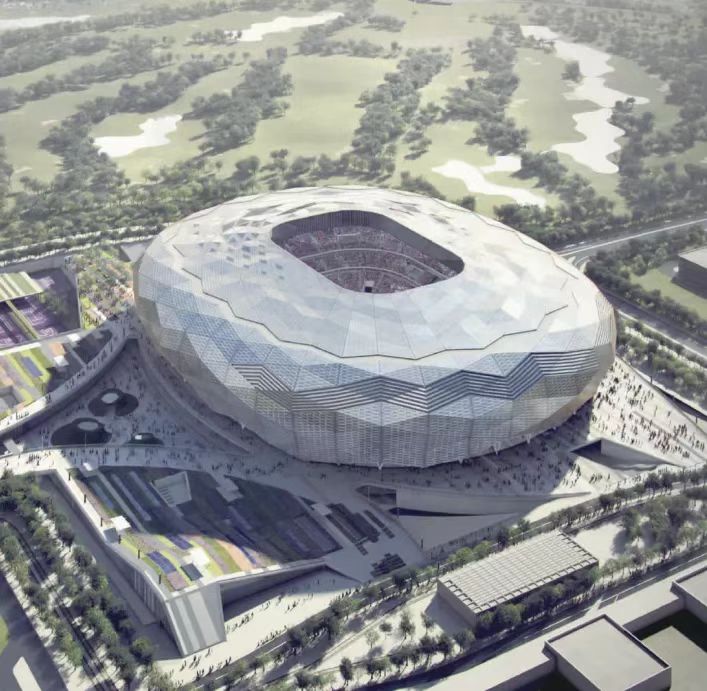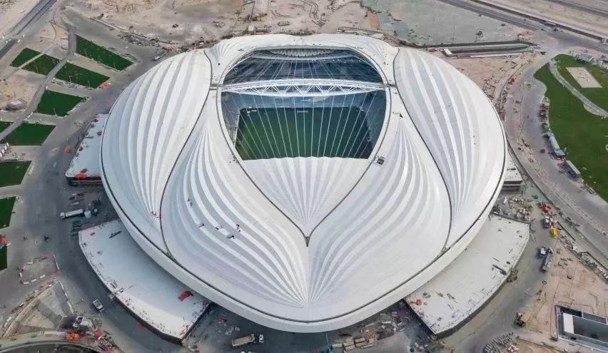 即将举办6场小组赛和1场十六强赛的贾努布球场(Al Janoub Stadium)则是由已故全球知名建筑师扎哈·哈迪德(Zaha Hadid)与AECOM联合进行建筑设计。考虑到地处沿海城市沃克拉,该球馆的屋顶被设计成一个抽象的、倒置的单桅帆船船体,并在体育场建设中运用了木材等传统材料,更能反映出该地区的海洋传统和历史特性。