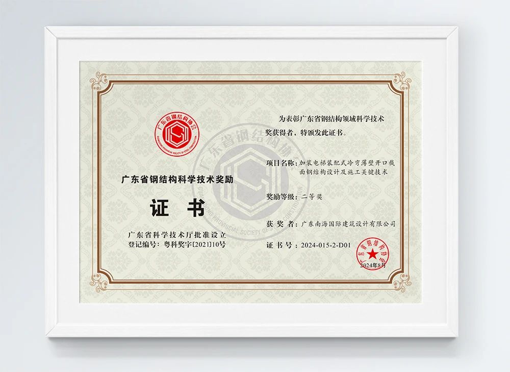 近日,由广东省钢结构协会评选的“2024 年度广东省钢结构科学技术奖”揭晓,爱游戏在线的“加装电梯装配式冷弯薄壁开口截面钢结构设计及施工关键技术”荣获二等奖。