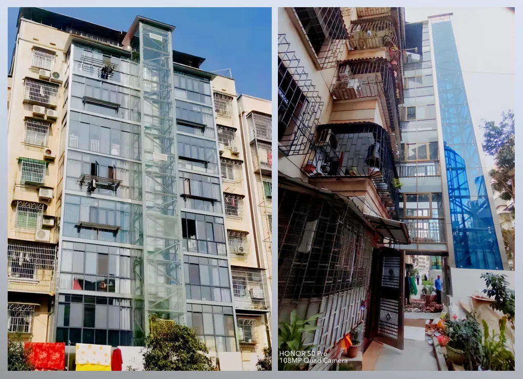 该技术已成功应用于甘肃省兰州市城关区临夏路95号加装电梯项目(8度0.20g)、广东省中山市东区夏洋街42栋加建电梯工程(7度0.10g、基本风压0.70kN/m₂)等不同设防烈度及高风压地区。研究成果可操作性强,解决了城市更新中老旧小区加装电梯的难题,具有推广价值,应用前景广阔,目前成果应用数量已超过一千个项目。